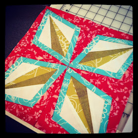 Here's Karen's block. She used some great Kate Spain prints with a few others to make this block. Yet another great block.
